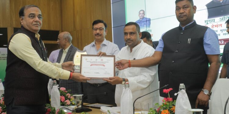 On the occasion, RK Ajmeria, Plant Head, Jindal Steel & Power was awarded by Health Minister Banna Gupta and Labor Planning, Training and Skill Development Minister Satyanand Bhokta.